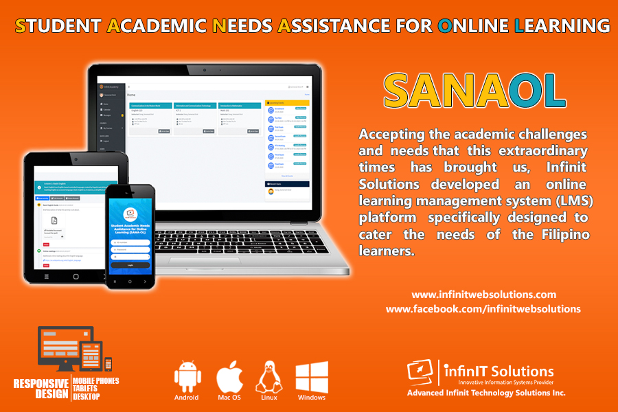 Accepting the academic challenges and needs that this extraordinary times has brought us, Infinit Solutions developed an online learning management system (LMS) platform specifically designed to cater the needs of the Filipino learners.